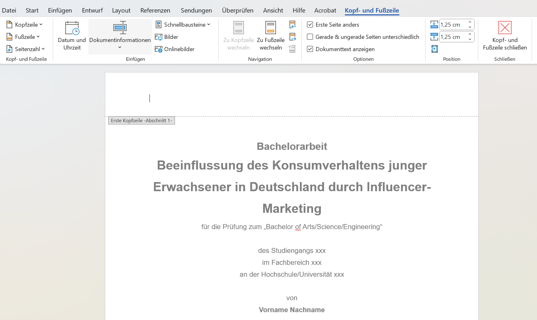 - Kein automatischer Text aus Word-Deckblatt-Funktionen verwenden