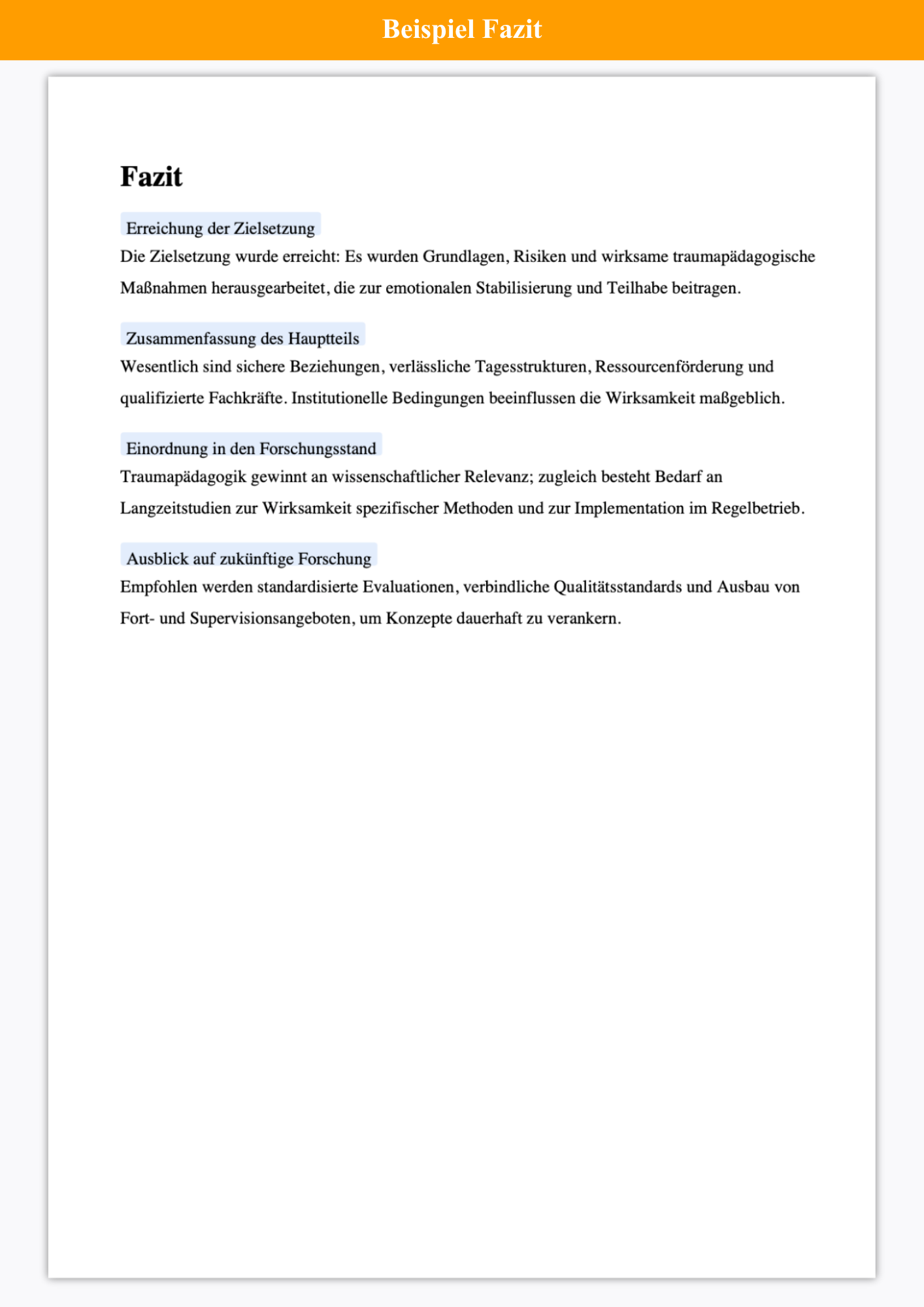 - Du siehst konkret, wie wissenschaftlich argumentiert wird, welche Formulierungen passen und wie Übergänge gestaltet werden.
